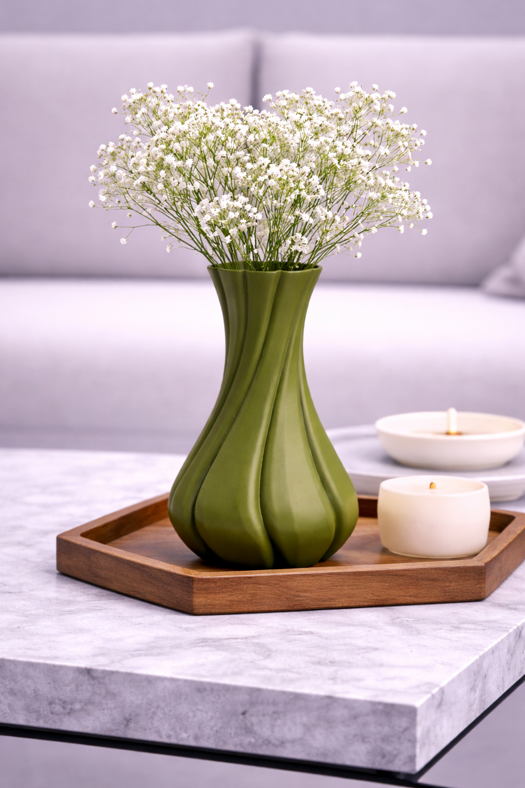3D printed using high-quality PLA, allowing use with live flowers while maintaining a lightweight, modern form.